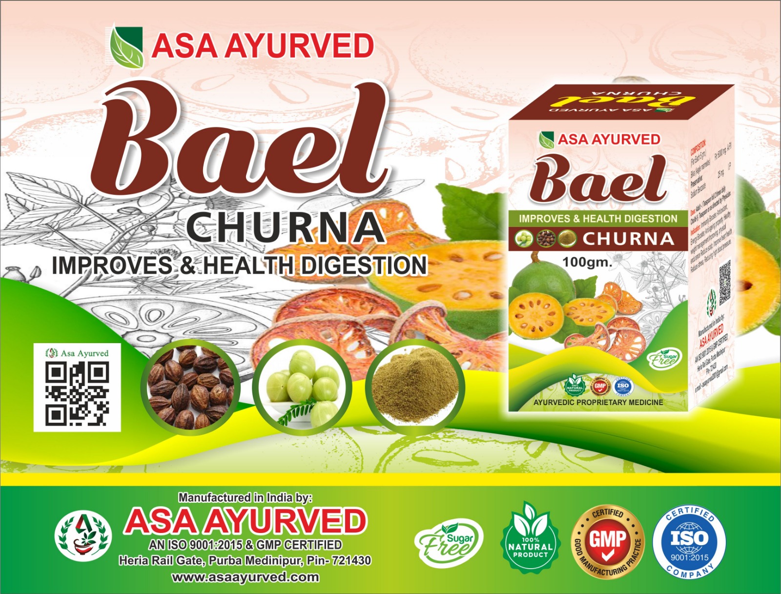 ASA AYURVED BAEL CHURNA IMPROVES & HEALTH DIGESTION.