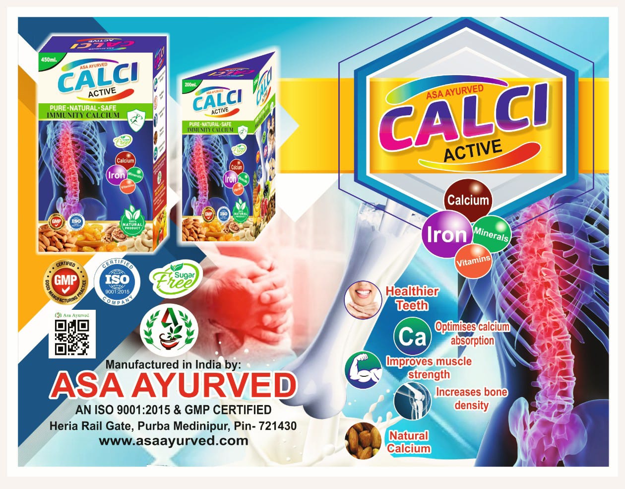 ASA AYURVED CALCI ACTIVE SYRUP HEALTHIER TEETH. OPTIMISES CALCIUM ABSORPTION. IMPROVES MUSCLE STRENGTH. INCREASES BONE DENSITY. NATURAL CALCIUM.